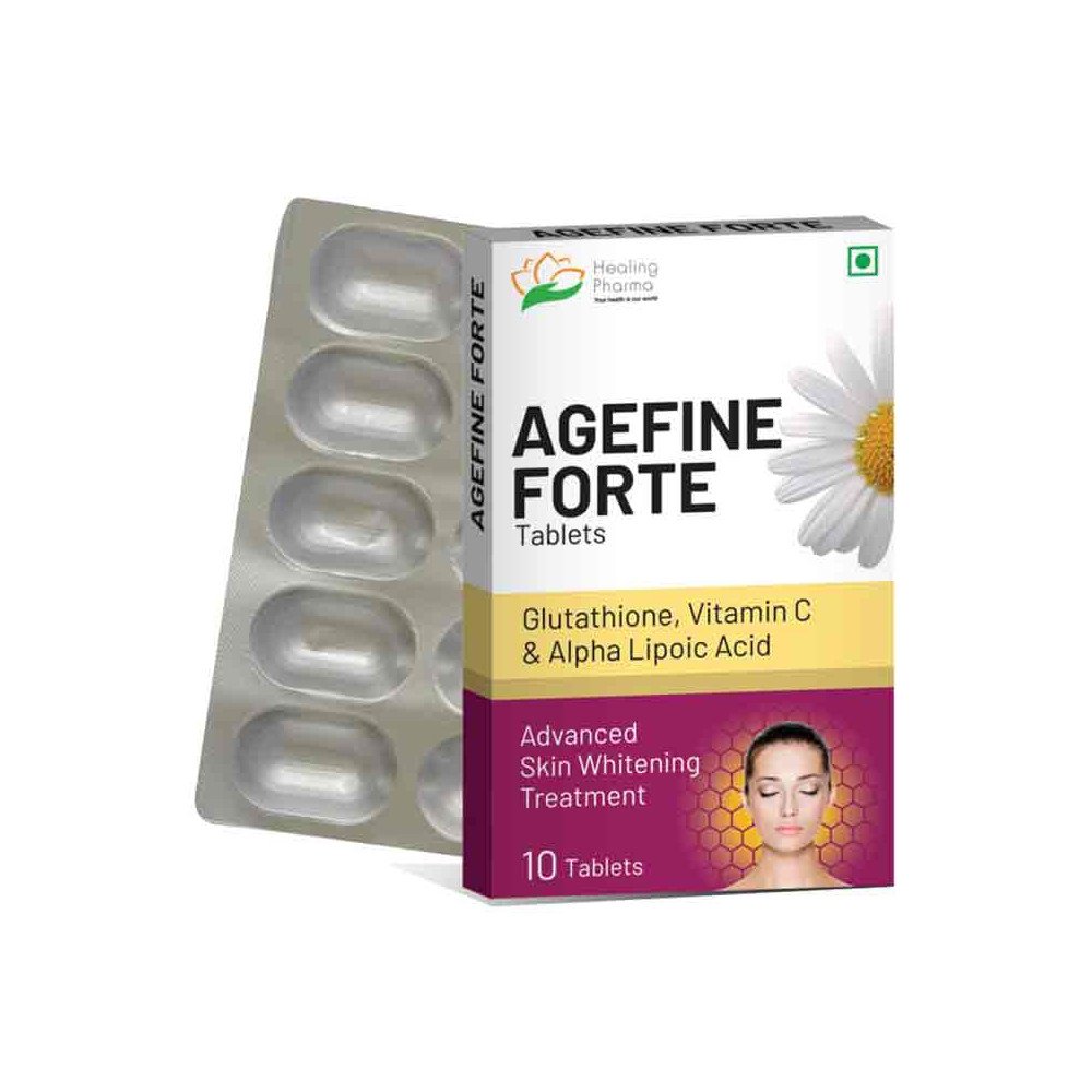 Healing Pharma Agefine Forte Tablet 은 고급 스킨케어 태블릿입니다. 글루타티온, 비타민C, 알파리포산의 힘을 결합한 제품입니다. 이 강력한 포뮬러는 피부의 자연스러운 광채를 강화하고 노화의 징후를 효과적으로 방지하도록 설계되었습니다.