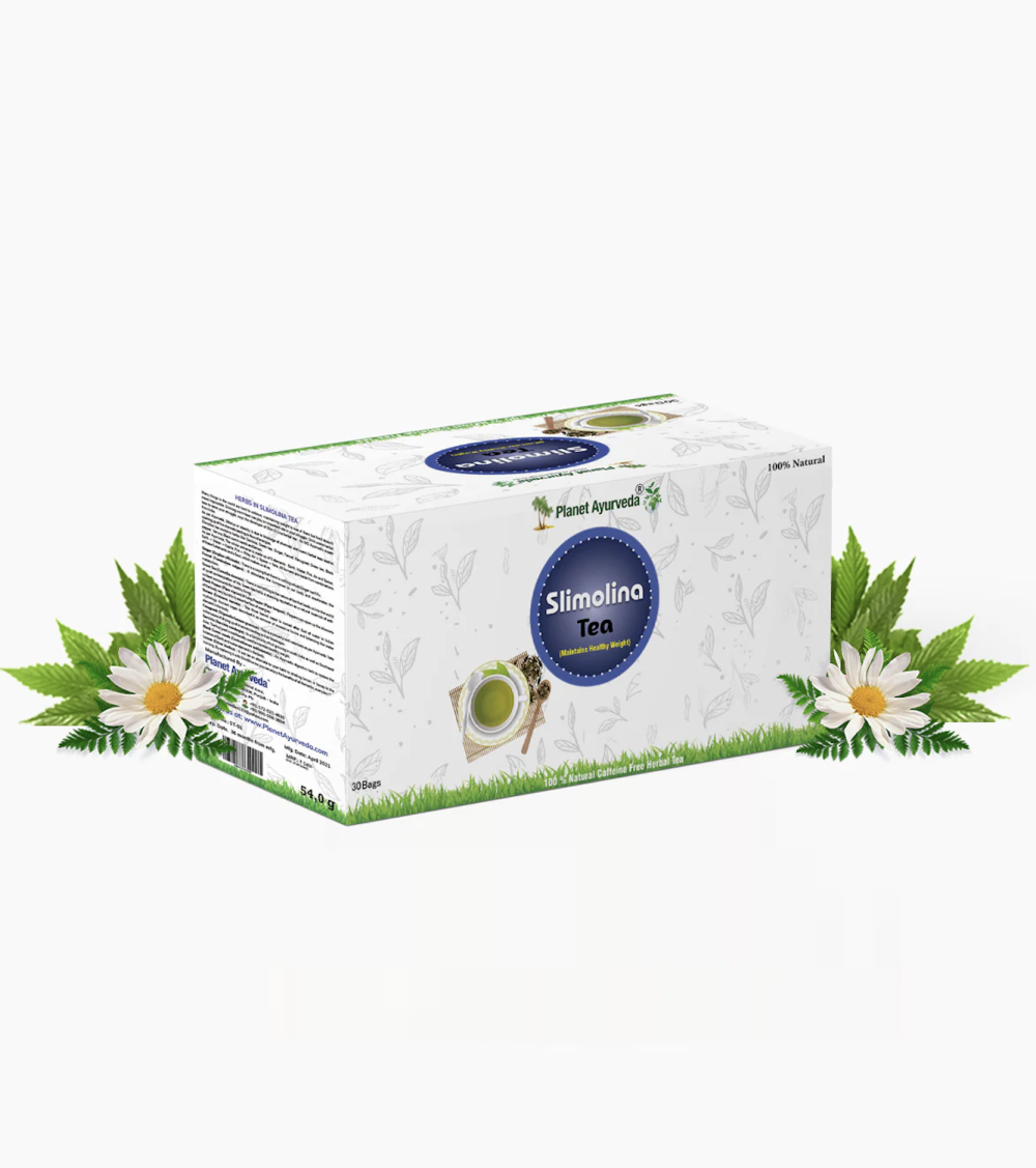 Slimolina 차에는 가르시니아, 녹차, 생강, 회향, 호로파 녹차, 흑후추, 바루나, 블랙 커민 씨앗 및 레몬과 같은 허브가 포함되어 있습니다.